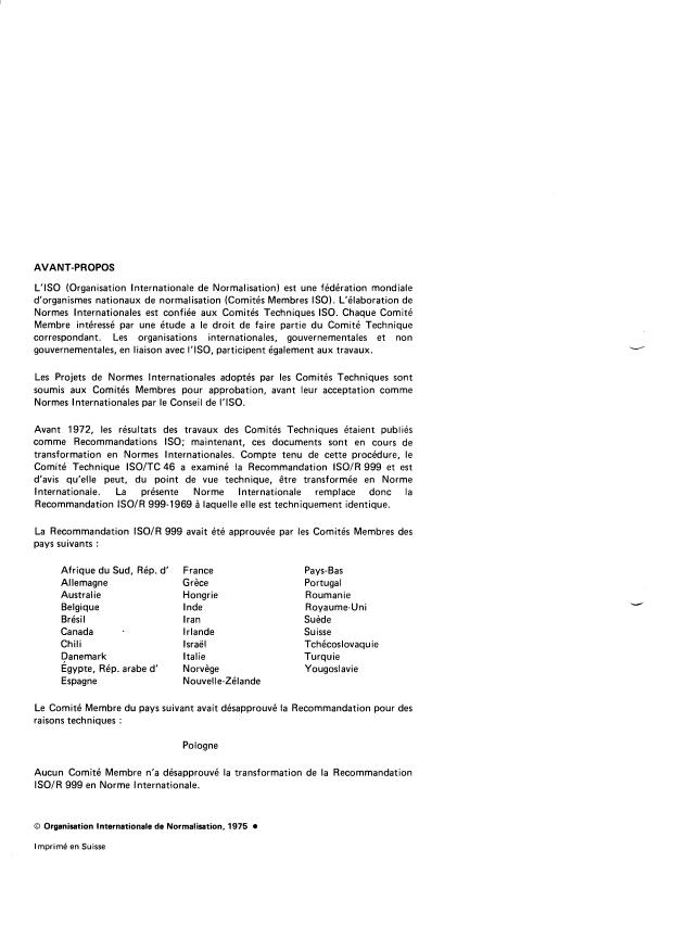 replaces IS0 Recommendation R 999-1969 to which it is technically identical.