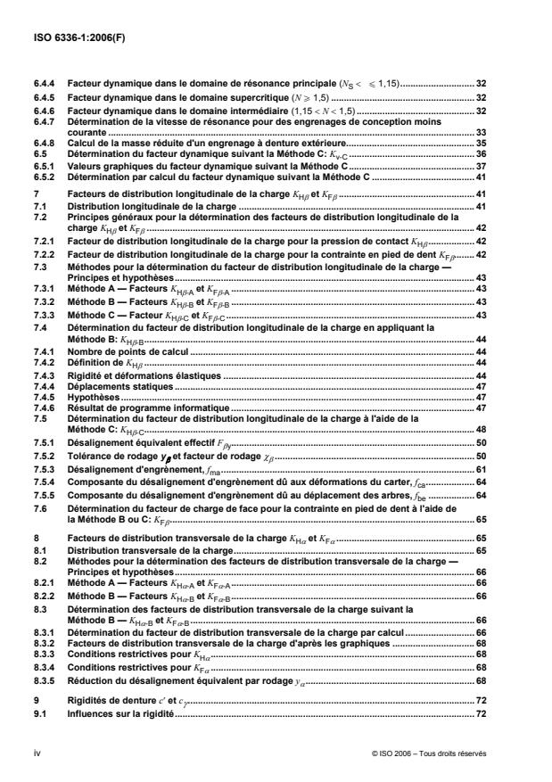 L'ISO 6336-1:2006 traite des principes de base, de l'introduction et des facteurs généraux d'influence pour le calcul de la capacité de charge des engrenages cylindriques à dentures droite et hélicoïdale, associée à l'ISO 6336-2:2006, l'ISO 6336-3:2006, l'ISO 6336-5:2003 et l'ISO 6336-6:2006, et fournit une méthode qui permet de comparer différentes conceptions d'engrenages. Elle n'a pas pour but de déterminer les performances d'une transmission de puissance par engrenages complète. Elle n'a pas non plus pour but d'être employée par des concepteurs généralistes en mécanique. En revanche, elle a pour but d'être utilisée par des concepteurs d'engrenages expérimentés, capables de sélectionner, pour chacun des facteurs employés dans les formules, des valeurs raisonnables sur la base de leurs connaissances en matière de conception d'engrenages similaires et conscients des effets des points particuliers discutés. Les formules de l'ISO 6336 ont pour but d'établir une méthode homogène pour le calcul de la capacité de charge vis-à-vis de la pression de contact et de la contrainte de flexion en pied de dent des roues cylindriques à denture en développante droite ou hélicoïdale.