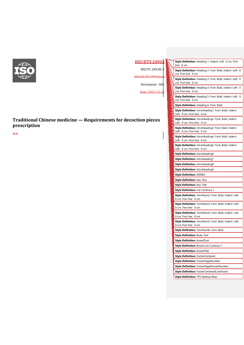 REDLINE ISO/DTS 24943 - Traditional Chinese medicine — Requirements for decoction pieces prescription Released:17. 12. 2025