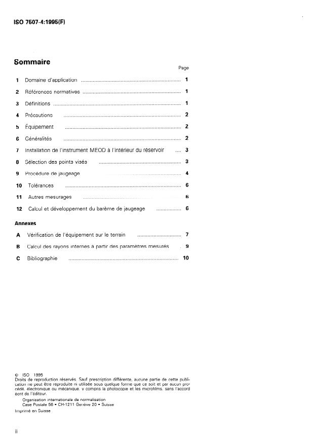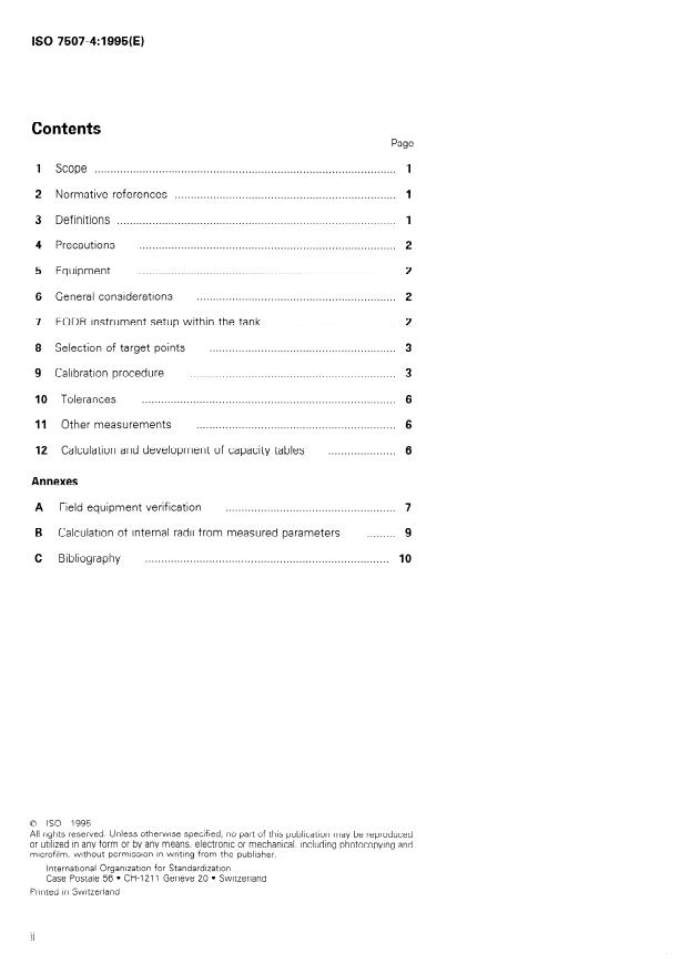 ISO 7507-4:1995 is a standard published by the International Organization for Standardization (ISO). Its full title is "Petroleum and liquid petroleum products — Calibration of vertical cylindrical tanks — Part 4: Internal electro-optical distance-ranging method". This standard covers: Specifies a method for the calibration of vertical cylindrical tanks having diameters greater than 5 m by means of internal measurements using an electro-optical distance-ranging instrument (EODR), and for the subsequent compilation of tank capacity tables. Not applicable to the calibration of abnormally deformed tanks or of noncircular tanks. Applicable to tanks tilted by