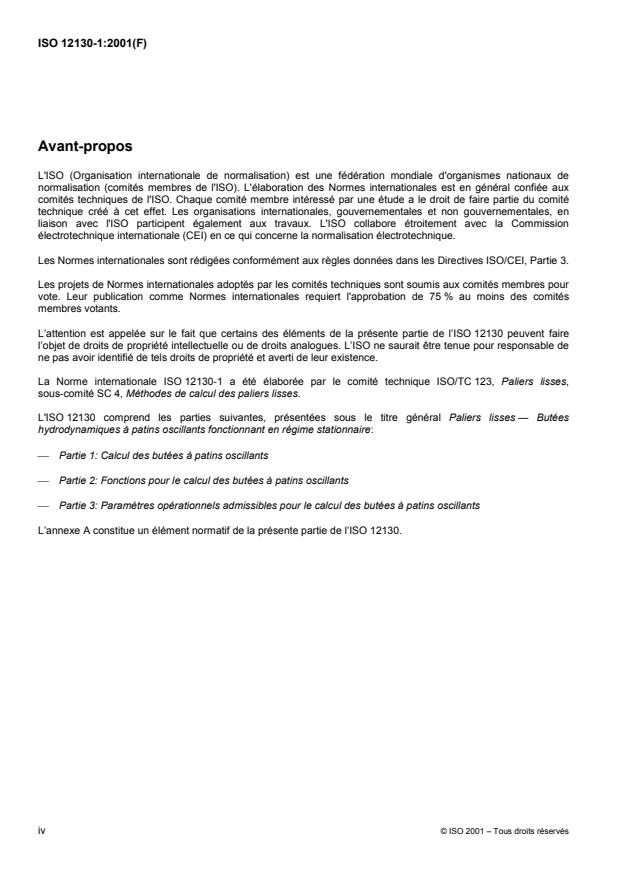 ISO 12130-1:2001 - Paliers lisses -- Butées hydrodynamiques a patins oscillants fonctionnant en régime stationnaire