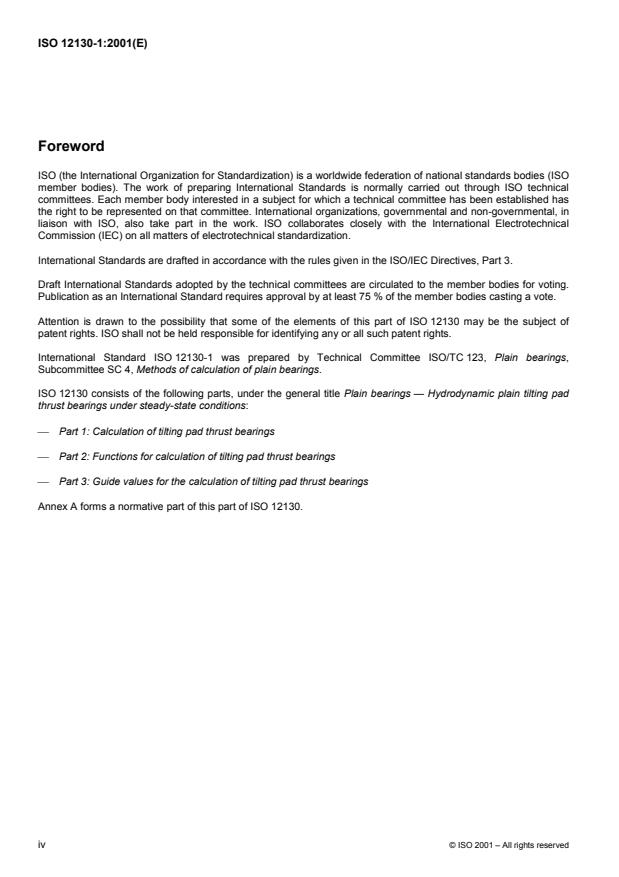ISO 12130-1:2001 - Plain bearings -- Hydrodynamic plain tilting pad thrust bearings under steady-state conditions