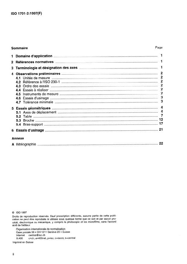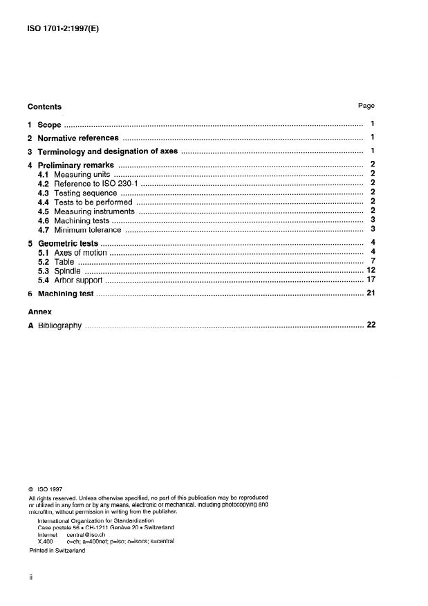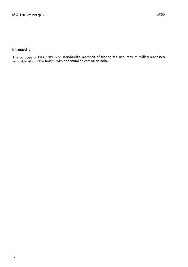 ISO 1701-2:1997 is a standard published by the International Organization for Standardization (ISO). Its full title is "Test conditions for milling machines with table of variable height — Testing of the accuracy — Part 2: Machines with horizontal spindle". This standard covers: Test conditions for milling machines with table of variable height — Testing of the accuracy — Part 2: Machines with horizontal spindle