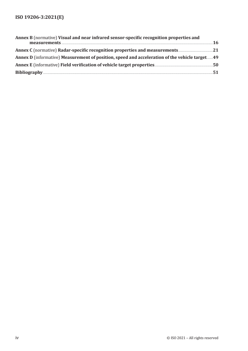 ISO 19206-3:2021 - "Road vehicles - Test devices for target vehicles, vulnerable road users and other objects - Part 3: Requirements for passenger vehicle 3D targets" specifies performance and verification requirements for surrogate vehicle targets used to evaluate detection by active safety systems and ADAS. The standard defines the properties of an omni-directional, multi-purpose 3D vehicle target designed to represent passenger cars (notably B and C segment vehicles) in size, shape and sensor reflection characteristics. It covers how targets should respond to common sensing technologies (optical, radar, thermal), and includes requirements for target carriers, calibration and field verification.