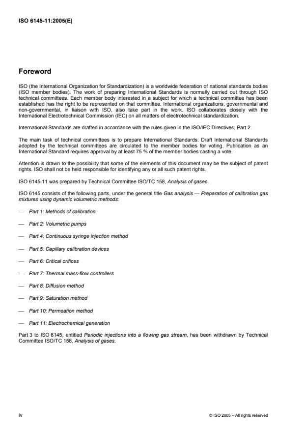 Keywords: ISO 6145-11:2005, electrochemical generation, calibration gas mixtures, dynamic volumetric methods, gas analysis standard, electrolytic cell design, uncertainty evaluation, complementary gas, Faraday constant.