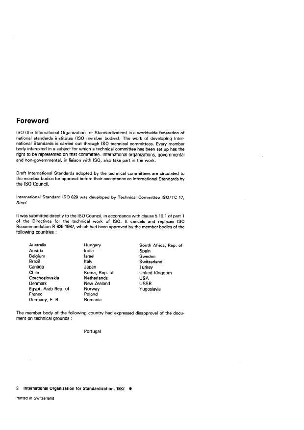 International Standard IS0 629 was developed by Technical Committee ISO/TC 17,