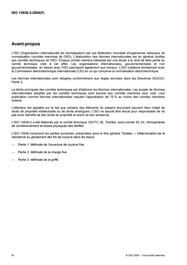 ISO 13936-3:2005 - Textiles -- Détermination de la résistance au glissement des fils de couture dans les tissus