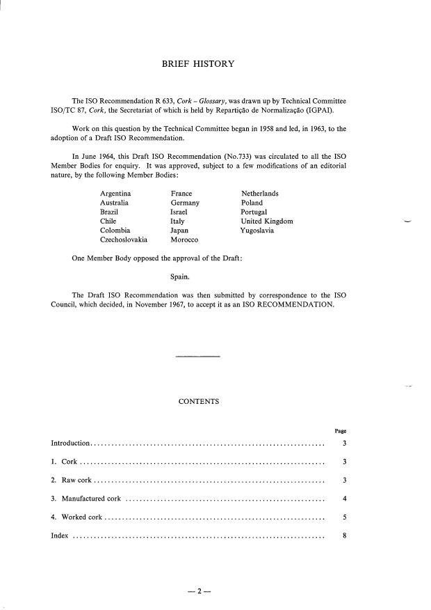 The IS0 Recommendation R 633, Cork - Glossary, was drawn up by Technical Committee