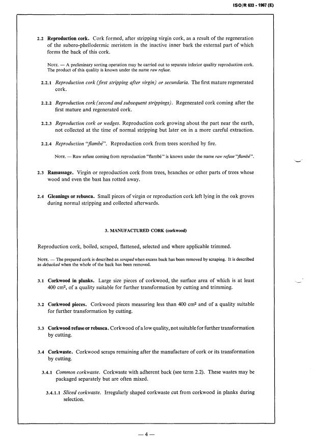 ISO/R 633:1967 is a standard published by the International Organization for Standardization (ISO). Its full title is "Cork — Glossary". This standard covers: Cork — Glossary