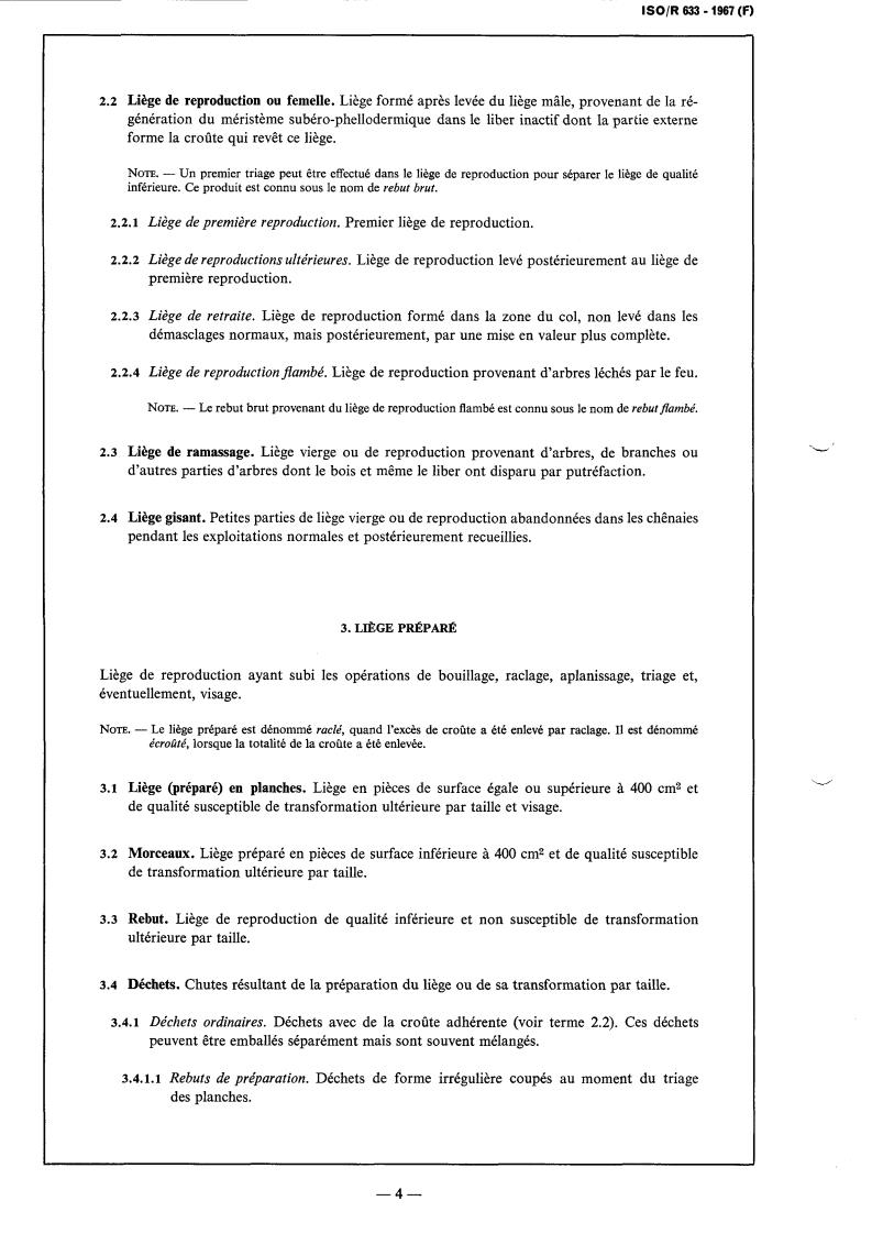 The purpose of this IS0 Recommendation is to define cork and to determine and define the terms