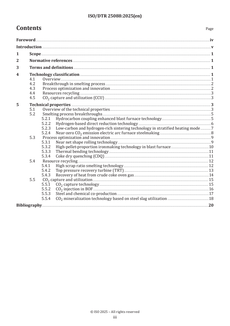 Technical Properties: ISO/TR 25088 provides detailed information on the technical sophistication, feasibility, and maturity level of various low-carbon technologies, aiding in practical decision-making for steel enterprises.