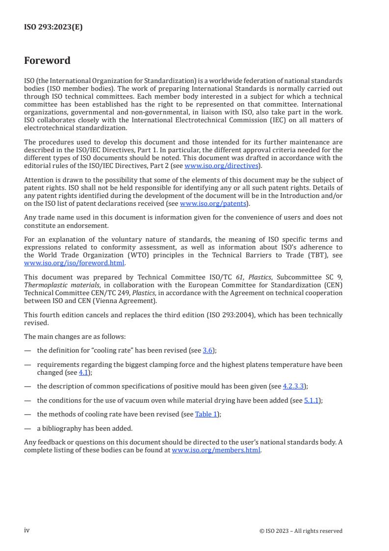 Keywords: ISO 293:2023, compression moulding, thermoplastic test specimens, cooling rate, moulding press, flash mould, positive mould, specimen preparation.