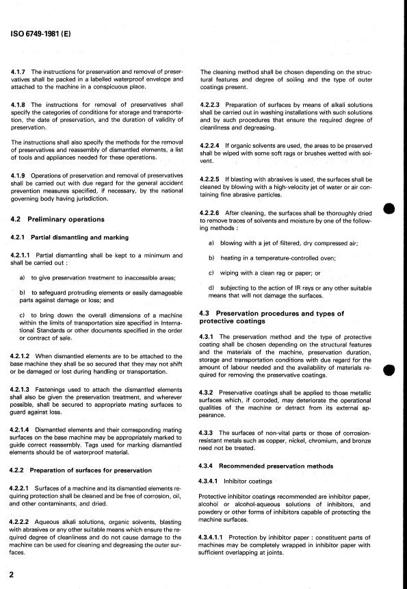 ISO 6749:1981 is a standard published by the International Organization for Standardization (ISO). Its full title is "Earth-moving machinery — Preservation and storage". This standard covers: Earth-moving machinery — Preservation and storage