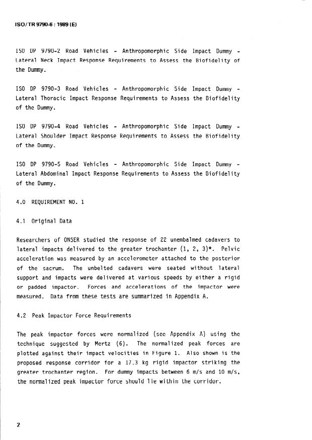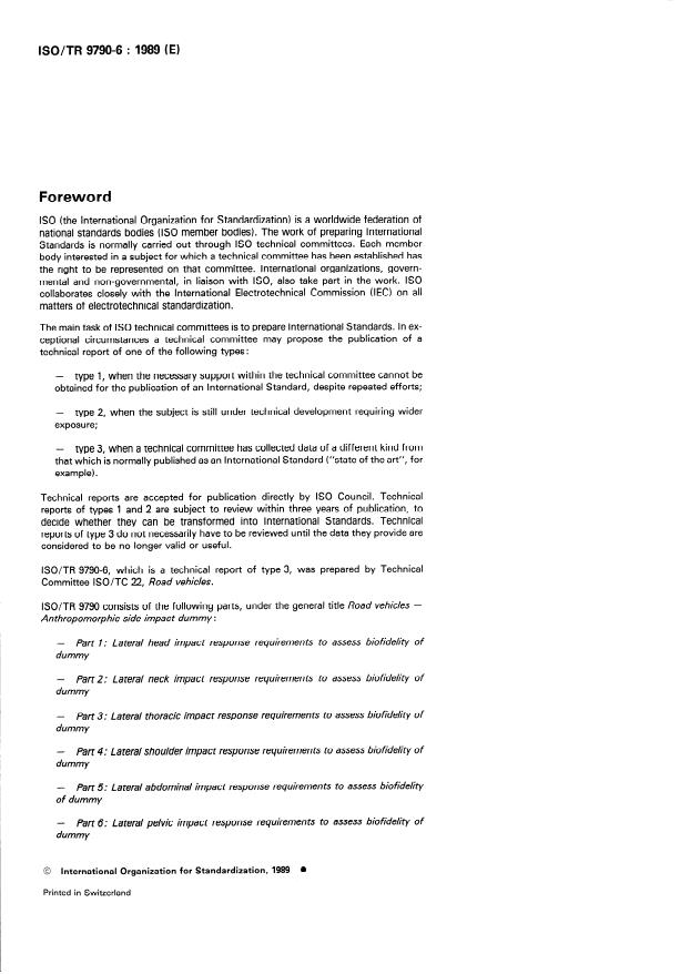 ISO/TR 9790-6:1989 - Road vehicles -- Anthropomorphic side impact dummy