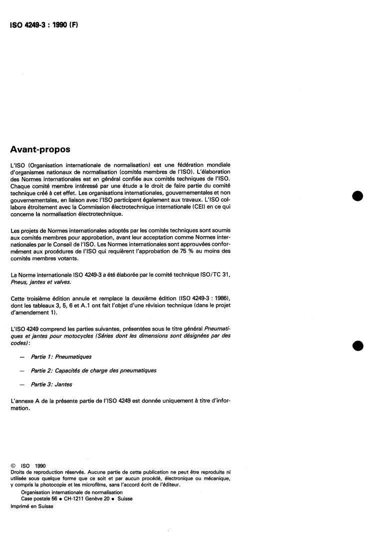 ISO 4249-3:1990 - Motorcycle tyres and rims (Code-designated series)