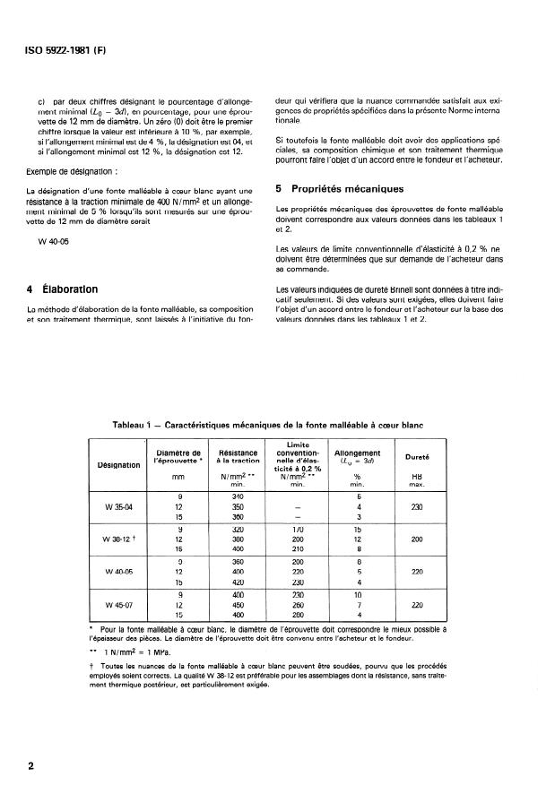 et son traitement thermique, sont laissés à l’initiative du fon- valeurs données dans les tableaux 1 et 2.