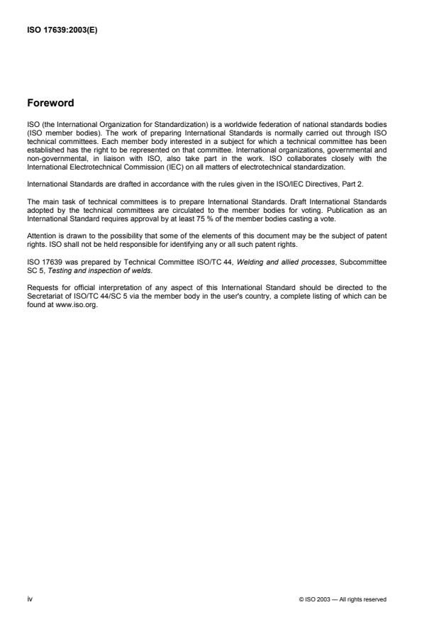 L'ISO 17639 a été élaborée par le comité technique ISO/TC 44, Soudage et techniques connexes,