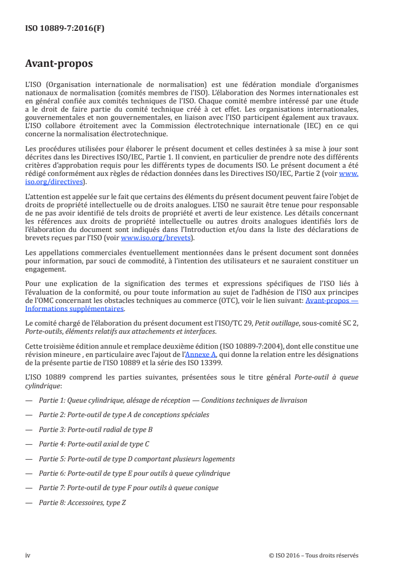 ISO 10889-7:2016 - Porte-outil à queue cylindrique — Partie 7: Porte-outil de type F pour outils à queue conique/10/2016