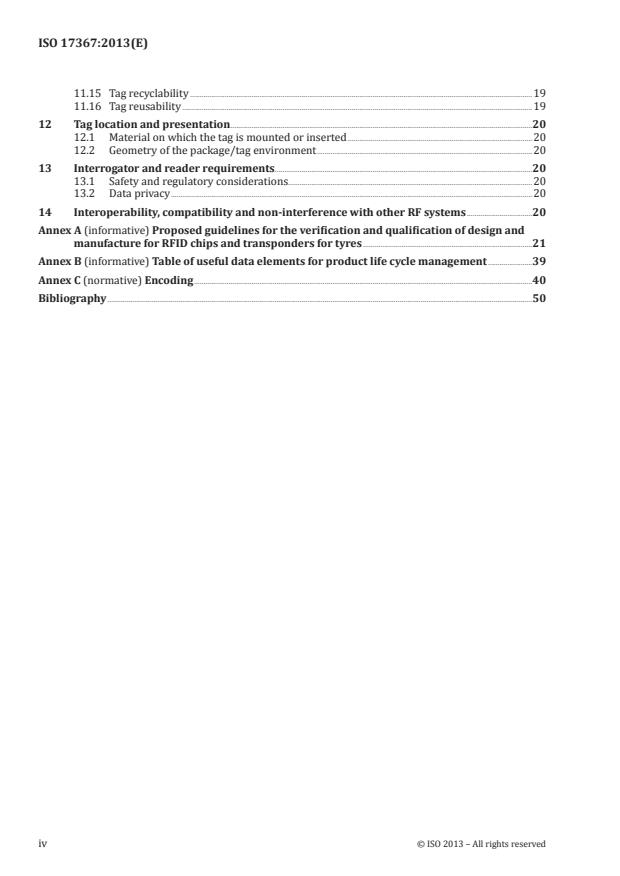 Subclauses 7.2 to 7.7 describe the data content of RFID tags for the product layer. They identify,