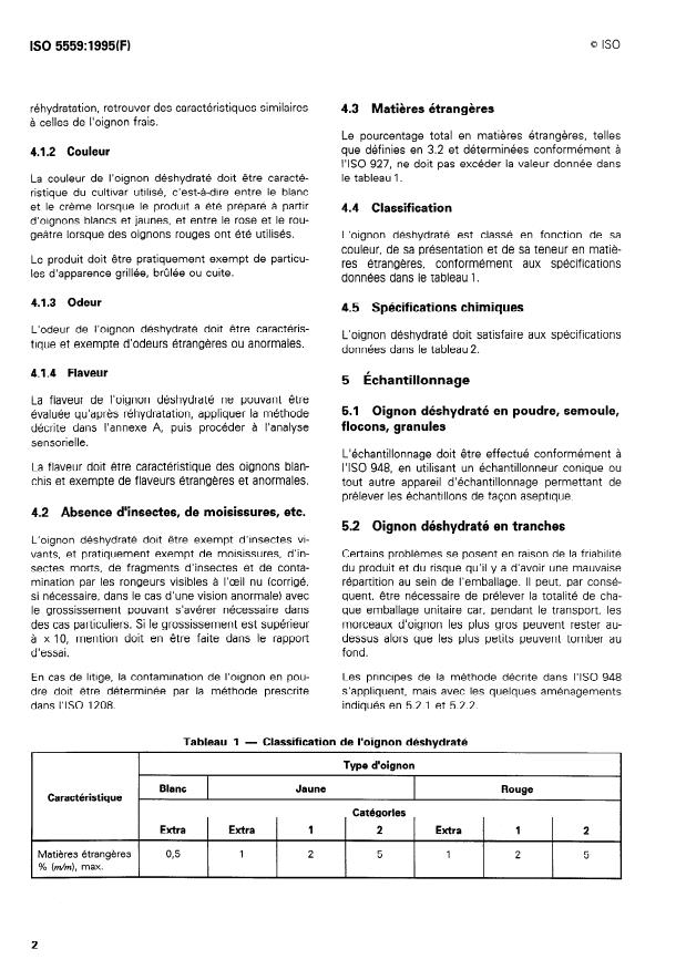 ISO 930: 1980, Épices - Dé termina tion des cendres L’oignon déshydraté doit répondre aux spécifications