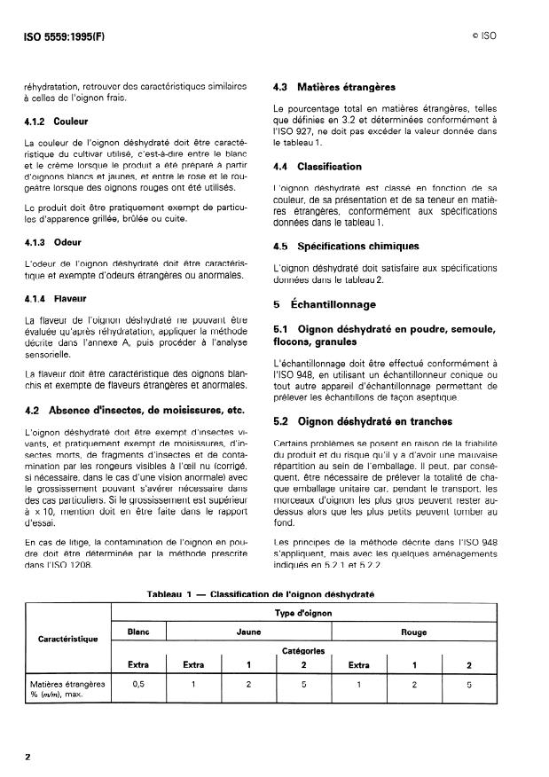 ISO 5559:1995 - Oignon déshydraté (Allium cepa Linnaeus) -- Spécifications