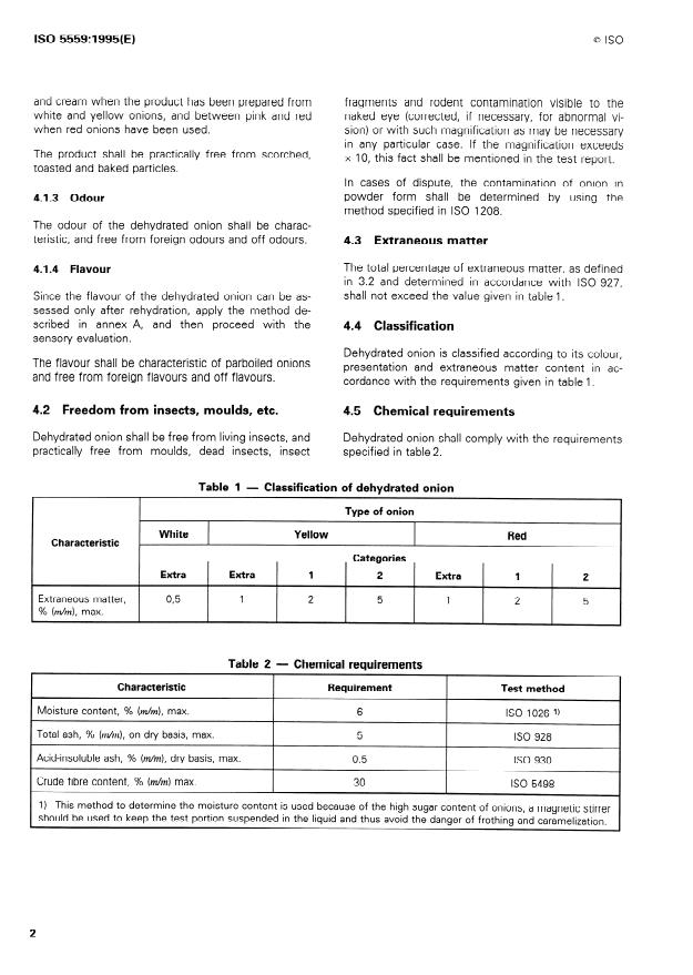 ISO 5559:1995 - Dehydrated onion (Allium cepa Linnaeus) -- Specification
