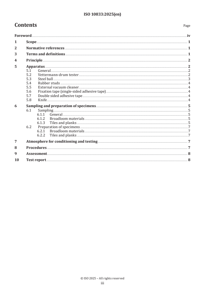 Keywords: ISO 10833, textile floor coverings, Vettermann drum test, cut edges, resistance to damage, broadloom, tiles, planks, testing procedure.