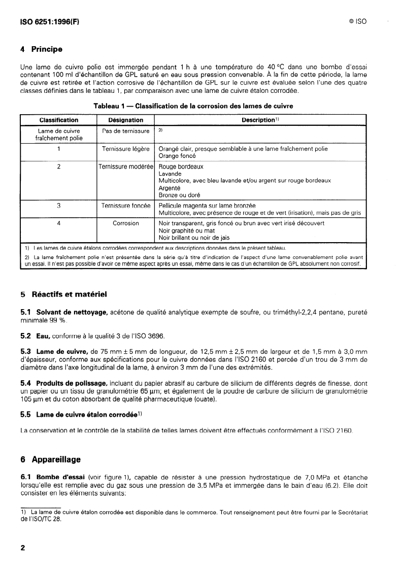 ISO 6251:1996 - Gaz de pétrole liquéfiés — Action corrosive sur le cuivre — Essai à la lame de cuivre Released:11/7/1996