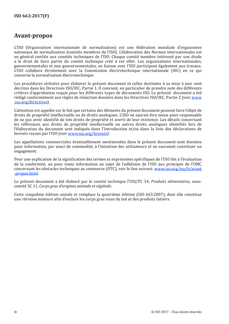 Cette cinquième édition annule et remplace la quatrième édition (ISO 663:2007), dont elle constitue