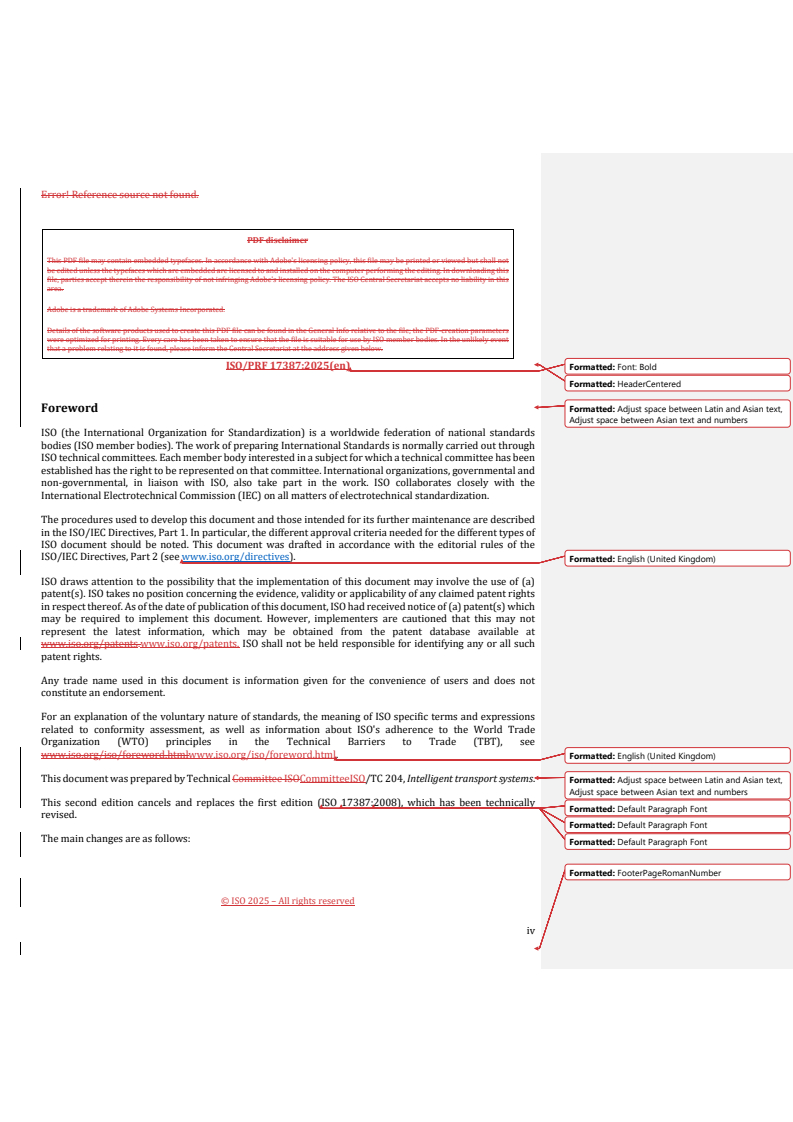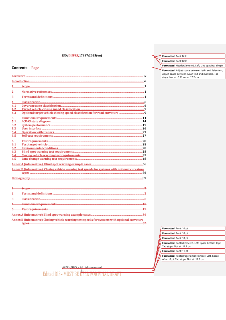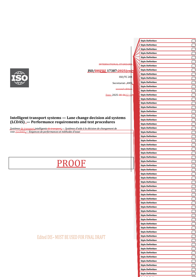 REDLINE ISO/PRF 17387 - Intelligent transport systems — Lane change decision aid systems (LCDAS) — Performance requirements and test procedures Released:17. 12. 2025