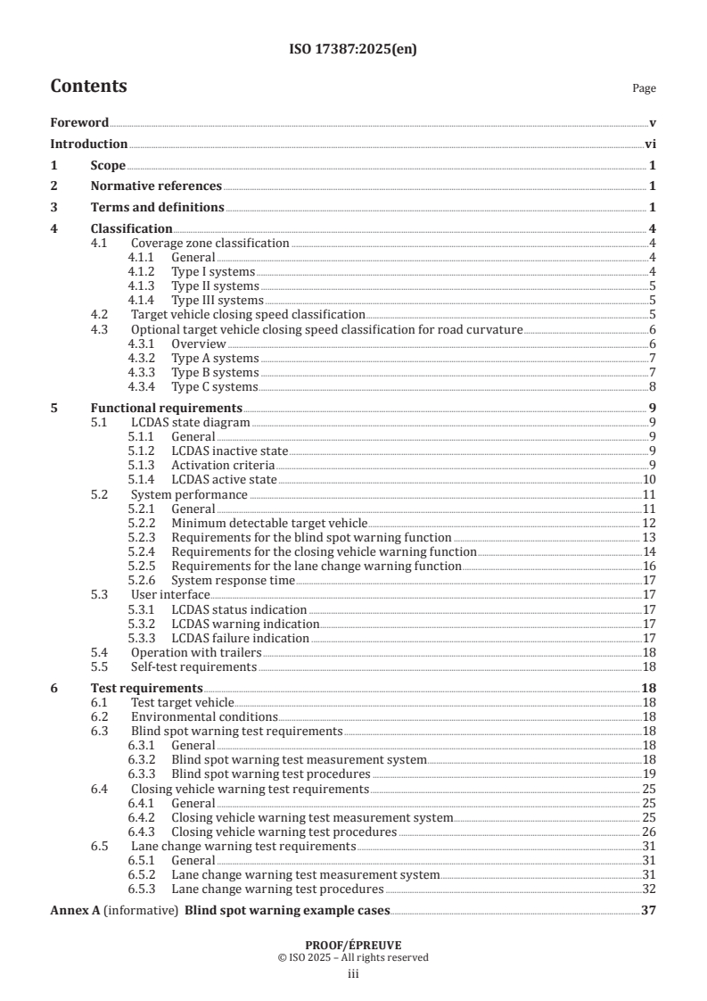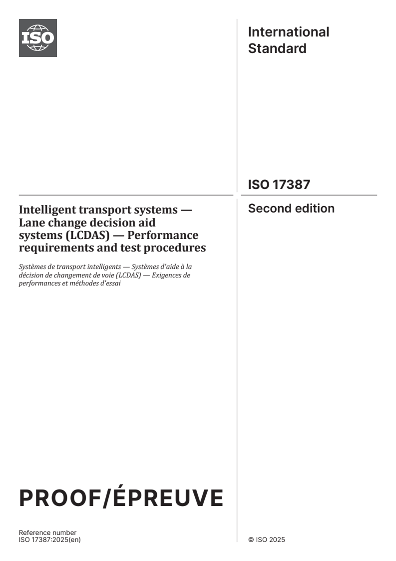 ISO/PRF 17387 - Intelligent transport systems — Lane change decision aid systems (LCDAS) — Performance requirements and test procedures Released:17. 12. 2025