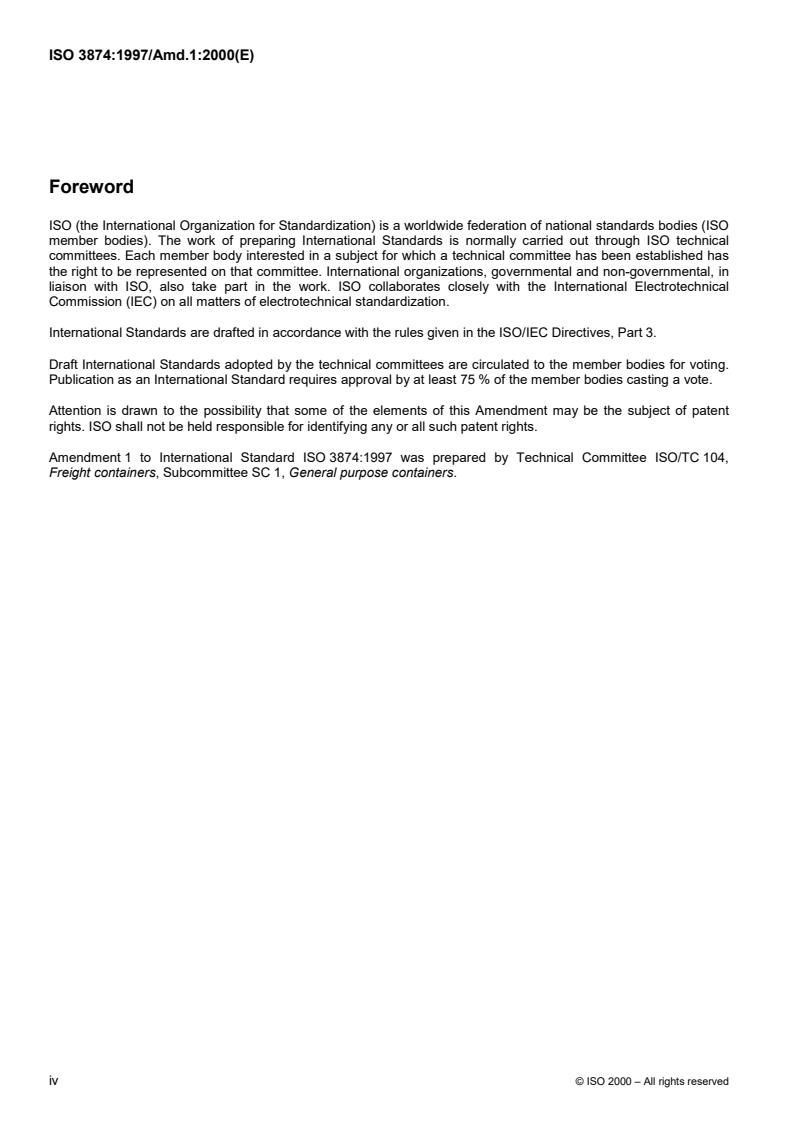 ISO 3874:1997/Amd 1:2000 - Series 1 freight containers — Handling and securing — Amendment 1: Twistlocks, latchlocks, stacking fittings and lashing rod systems for securing of containers Released:8/23/2001