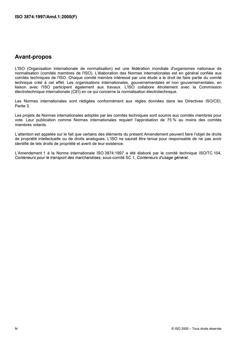 ISO 3874:1997/Amd 1:2000 is a standard published by the International Organization for Standardization (ISO). Its full title is "Series 1 freight containers — Handling and securing — Amendment 1: Twistlocks, latchlocks, stacking fittings and lashing rod systems for securing of containers". This standard covers: Series 1 freight containers — Handling and securing — Amendment 1: Twistlocks, latchlocks, stacking fittings and lashing rod systems for securing of containers