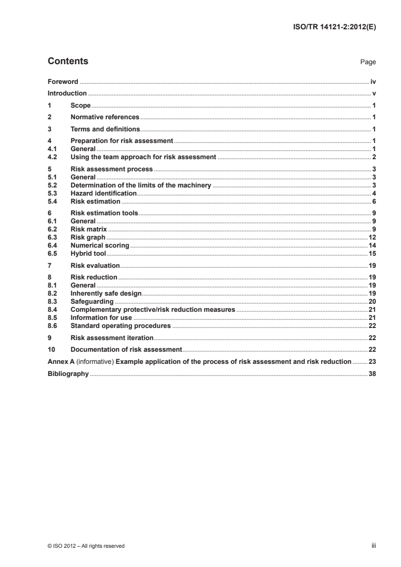 Keywords: ISO/TR 14121-2:2012, risk assessment, safety of machinery, hazard identification, risk estimation, risk reduction, ISO 12100, machine design, safety specialists.