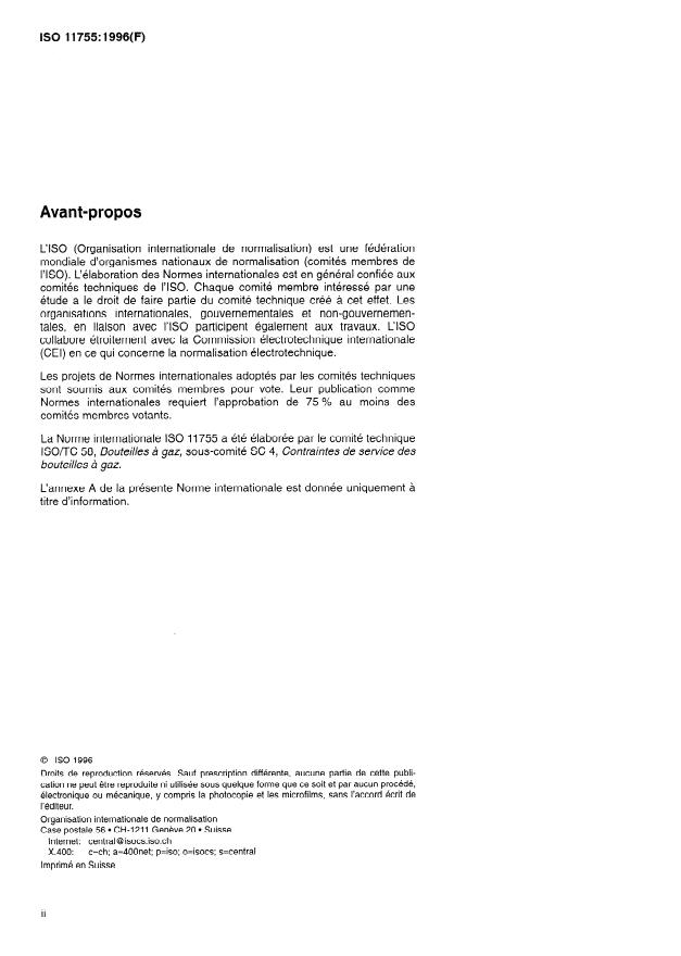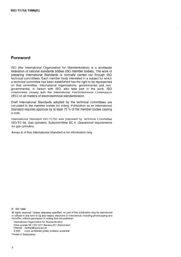ISO 11755:1996 is a standard published by the International Organization for Standardization (ISO). Its full title is "Cylinders in bundles for permanent and liquefiable gases (excluding acetylene) — Inspection at time of filling". This standard covers: Applies to single gas cylinders of water capacity up to 150 l manifolded to a bundle. Specifies minimum requirements for inspection at time of filling. Applies to cylinders for permanent and liquefied gases. Does not apply to cylinder bundles for acetylene gas.