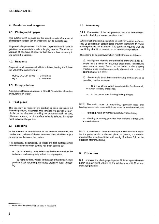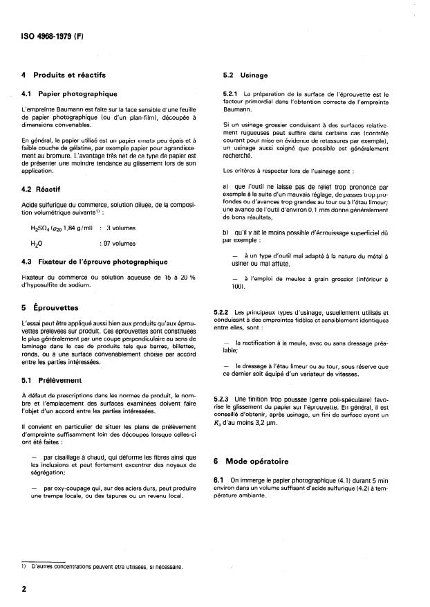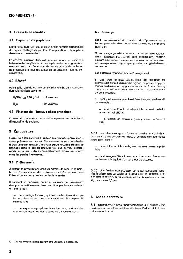 2) Dans le cas des aciers au soufre (teneur en soufre > 0,l %), l’essai peut être effectué, mais avec une solution d’acide sulfurique trés diluée.
