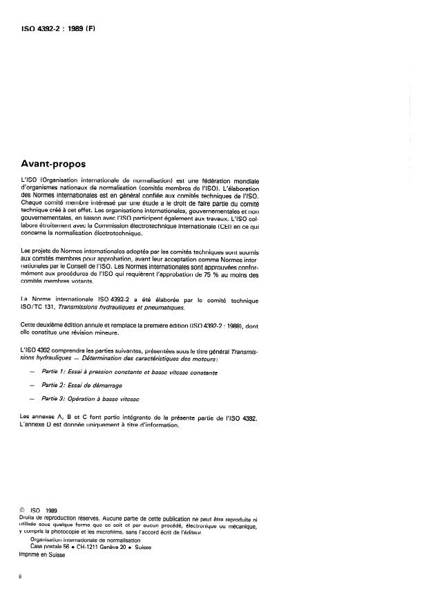 ISO 4392-2:1989 - Transmissions hydrauliques -- Détermination des caractéristiques des moteurs