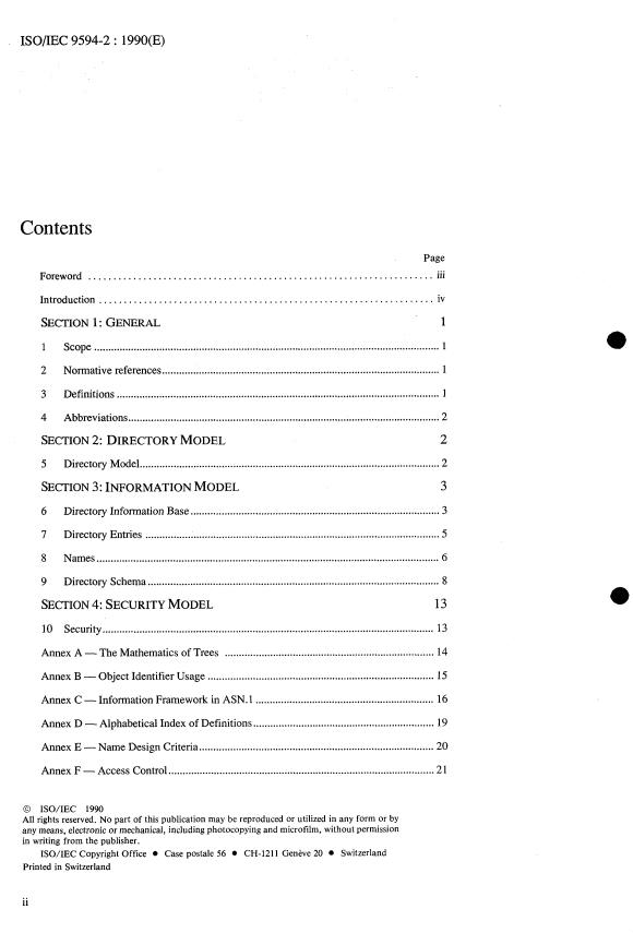 ISO/IEC 9594-2:1990 is a standard published by the International Organization for Standardization (ISO). Its full title is "Information technology — Open Systems Interconnection — The Directory — Part 2: Models". This standard covers: Information technology — Open Systems Interconnection — The Directory — Part 2: Models