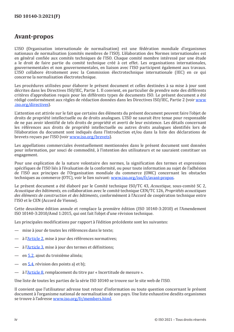ISO 10140-3:2021 - Acoustique -- Mesurage en laboratoire de l'isolation acoustique des éléments de construction