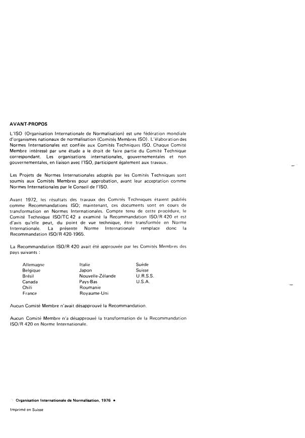 Committee ISO/TC42 has reviewed IS0 Recommendation R 420 and found it