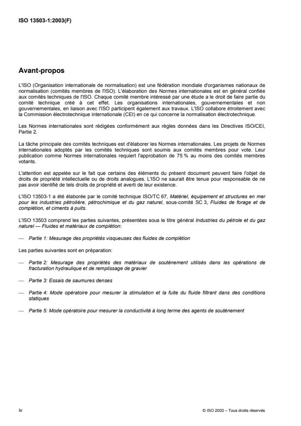 ISO 13503-1:2003 is a standard published by the International Organization for Standardization (ISO). Its full title is "Petroleum and natural gas industries — Completion fluids and materials — Part 1: Measurement of viscous properties of completion fluids". This standard covers: ISO 13503-1:2003 provides consistent methodology for determining the viscosity of completion fluids used in the petroleum and natural gas industries. For certain cases, methods are also provided to determine the rheological properties of a fluid.