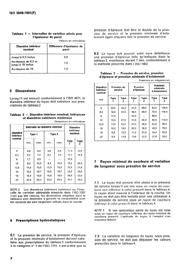 Tableau 1 - Intervalles de variation admis pour sion de service et la pression minimale d’écla-