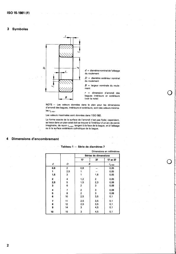 ISO 15:1981 - Roulements -- Roulements radiaux -- Dimensions d'encombrement -- Plan général