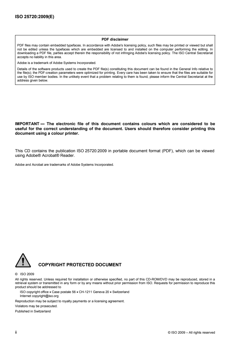 This CD contains the publication ISO 25720:2009 in portable document format (PDF), which can be viewed