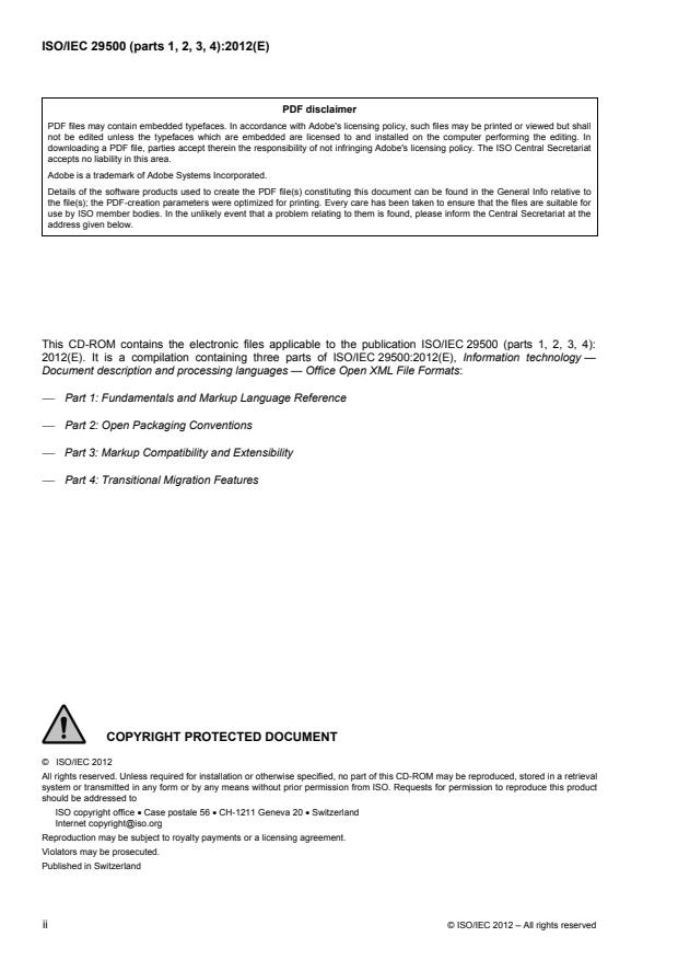 This CD-ROM contains the electronic files applicable to the publication ISO/IEC 29500 (parts 1, 2, 3, 4):