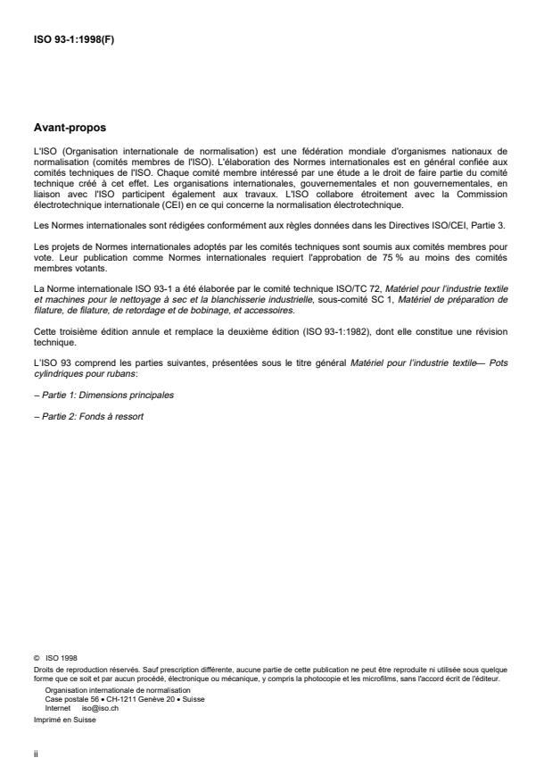 L’ISO 93 comprend les parties suivantes, présentées sous le titre général Matériel pour l’industrie textile— Pots