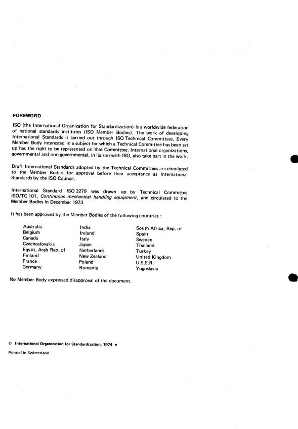 ISO 3279:1974 is classified under the following ICS (International Classification for Standards) categories: 53.040.01 - Continuous handling equipment in general. The ICS classification helps identify the subject area and facilitates finding related standards.