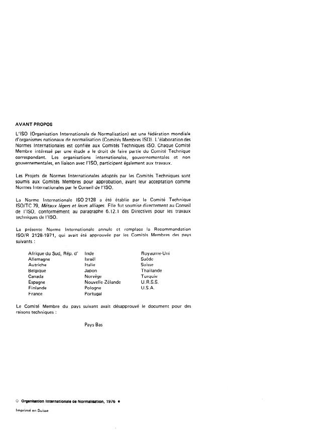 CDU 669.71 : 621.794.61 : 620.1 Réf. no : ISO 2128-1976 (F)