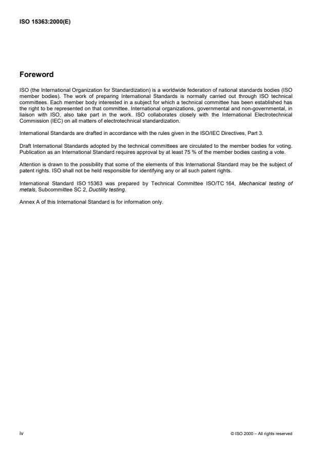 La Norme internationale ISO 15363 a étéélaboréepar le comité technique ISO/TC 164, Essais mécaniques des