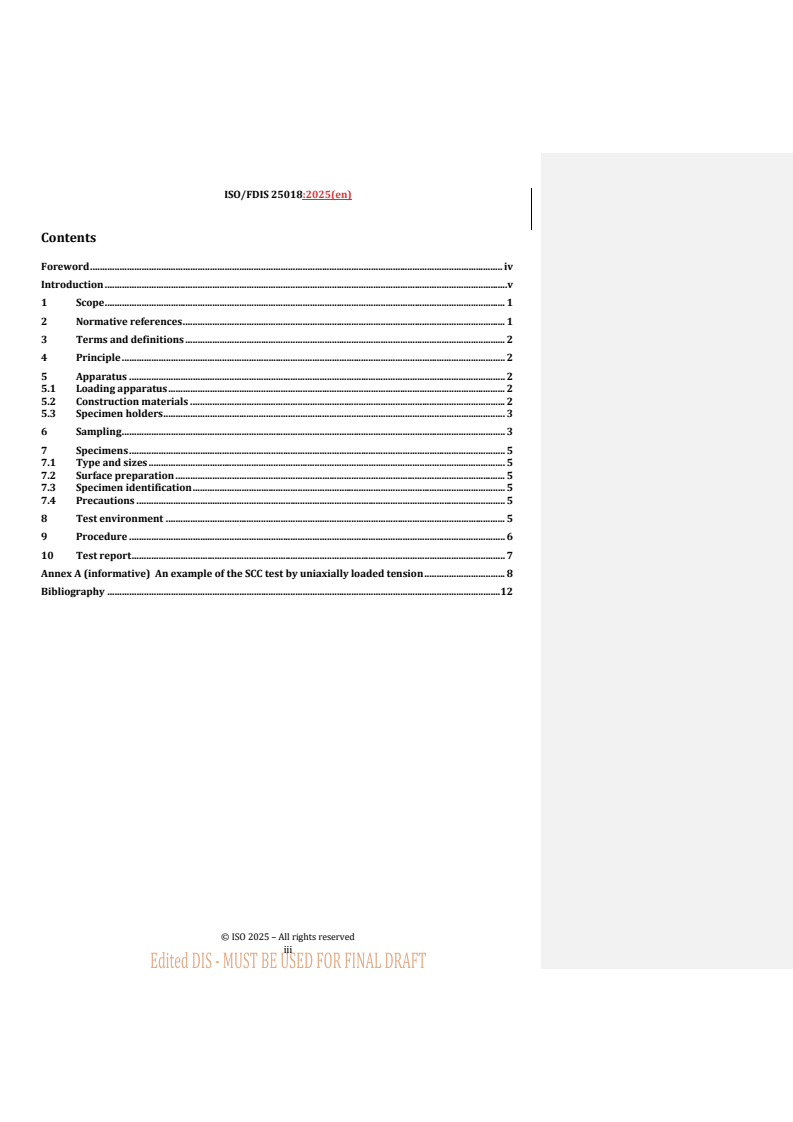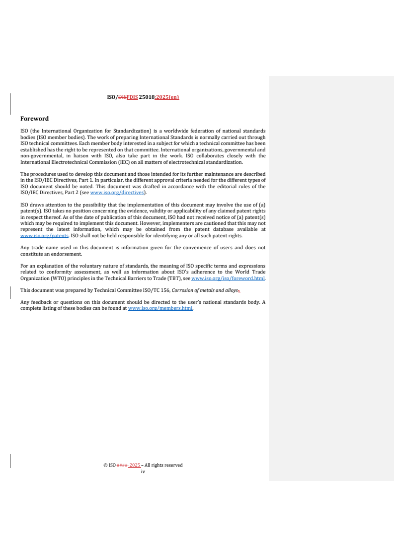REDLINE ISO/FDIS 25018 - Corrosion of metals and alloys — Determination of resistance to stress corrosion cracking of copper and copper-zinc alloys in ammonia vapour Released:10/10/2025